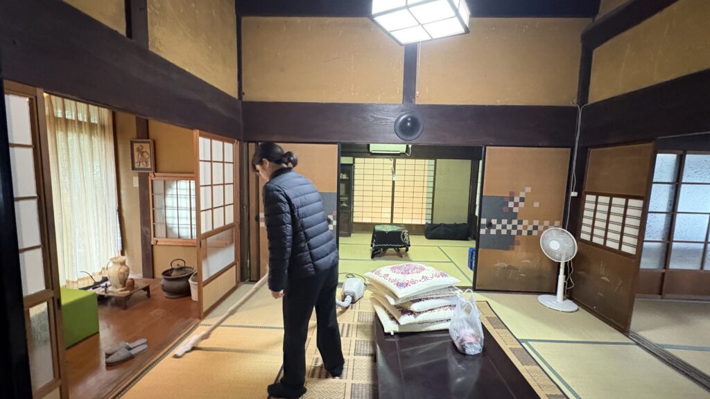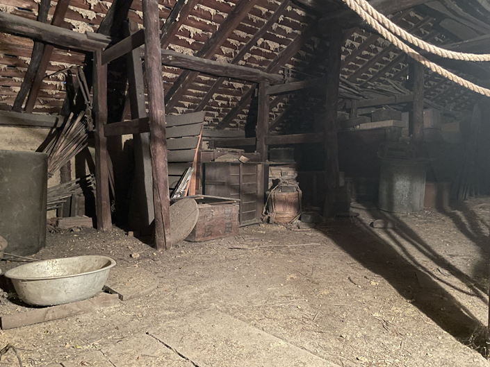 その古民家は築約170年で、敷地は200坪以上あり、駅からも近く利便性の高い場所に位置していた。屋根裏にも上がらせていただき、歴史ある建物の構造や空間の使い方を実際に見ることができ、大変貴重な経験となった。