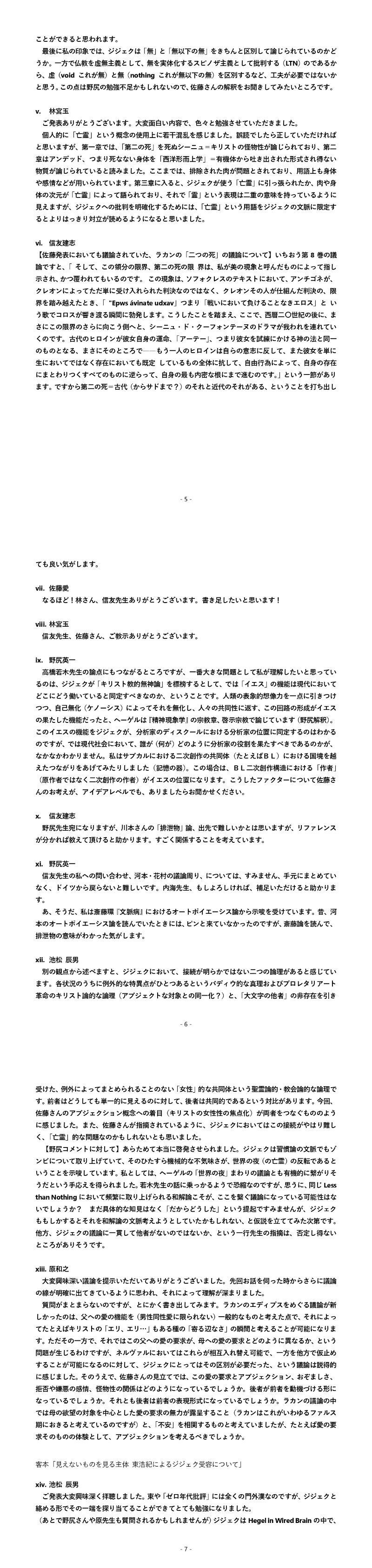 佐藤の発表は、これまで十分に顧みられなかったジジェクとクリステヴァの関係を明らかにするものであると同時に、クリステヴァを援用することで、ジジェクにおける男性性と女性性の関係の曖昧さを批判的に捉え直すものでもあるといえる。